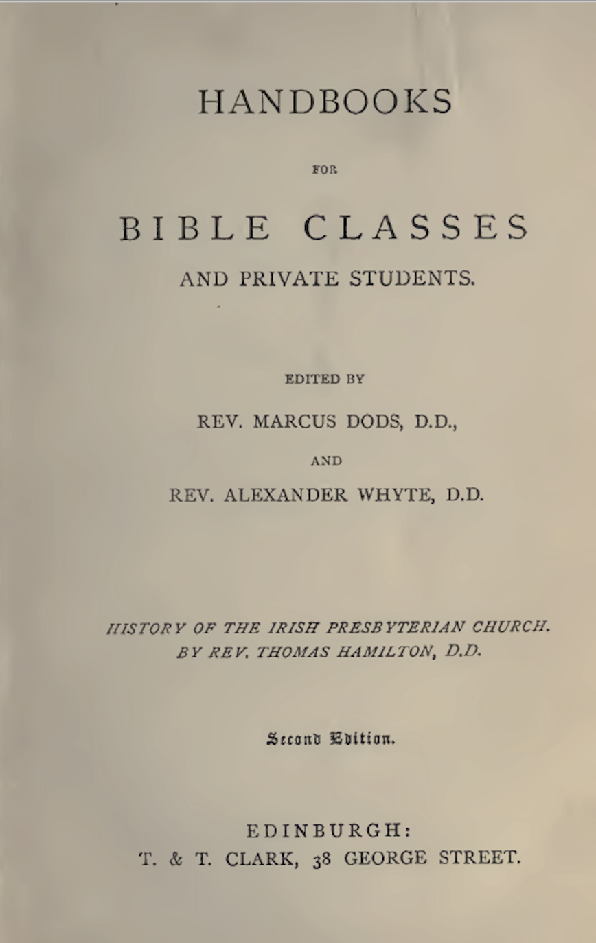 IMAGE: Rev. Thomas Hamilton, History of the Irish Presbyterian Church, Edinburgh, 1887, indicating that it is part of a series of "handbooks" aimed at “Bible classes and private students.” The first edition of this text had come out at the end of 1886, the year Gladstone’s Bill went through the Commons. That edition sold out in three months. Two other editions appeared in 1887, including this cheap “special edition” designed to “be circulated by the thousand in Ireland.”