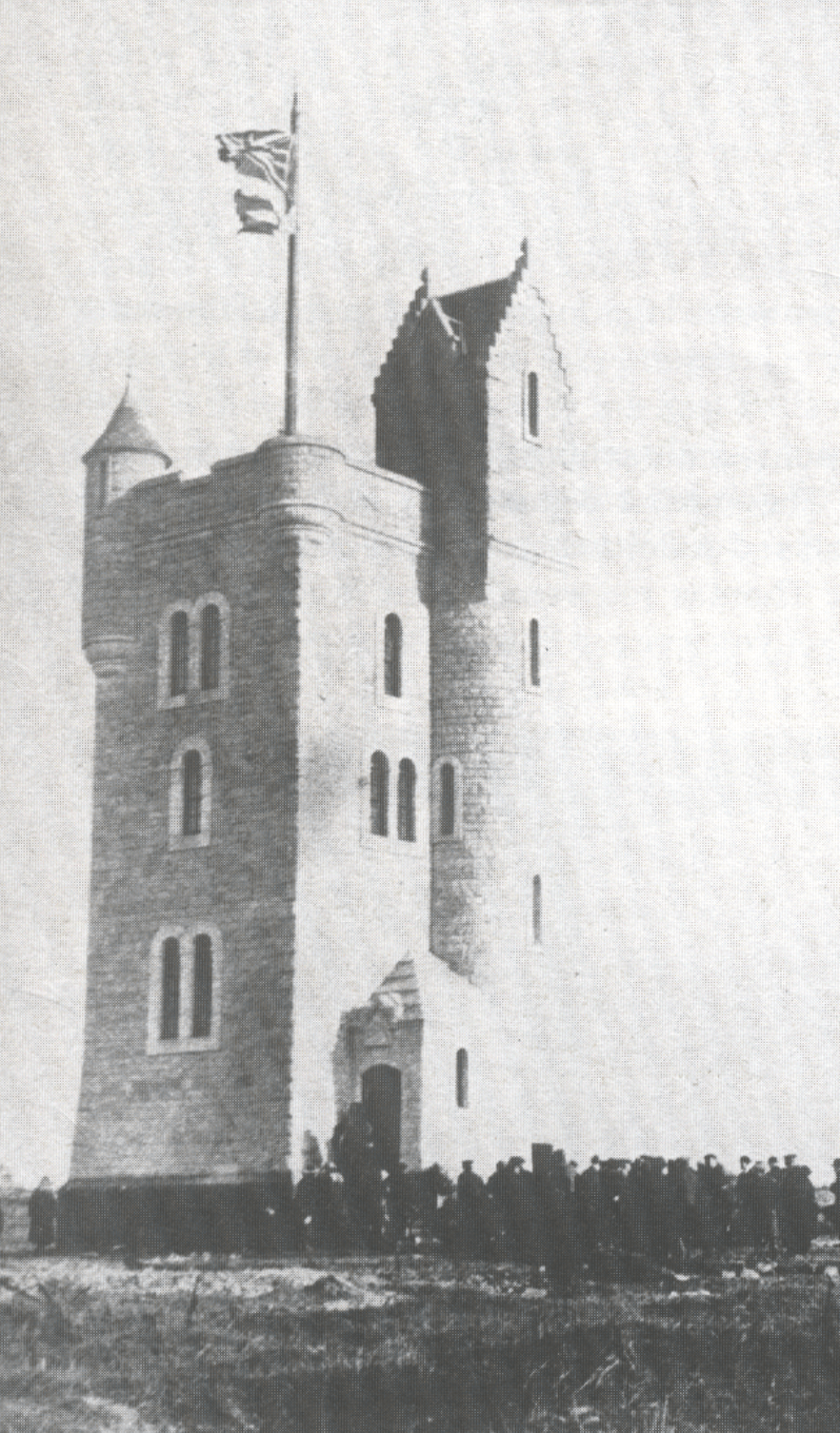 But doubtless the last thoughts of many of the heroes who fell that day were of the quiet home scenes, such as that which is commanded by the Clandeboye Monument, reproduced on the ‘famed Picard field’ where they fell. To many of them indeed “Helen’s Tower” had been a familiar landmark from boyhood. It met the gaze of the Belfast boys on their frequent train trips to Bangor. Not a man from County Down and few from Antrim or Derry or Armagh but had seen the tower and heard or read of its story.