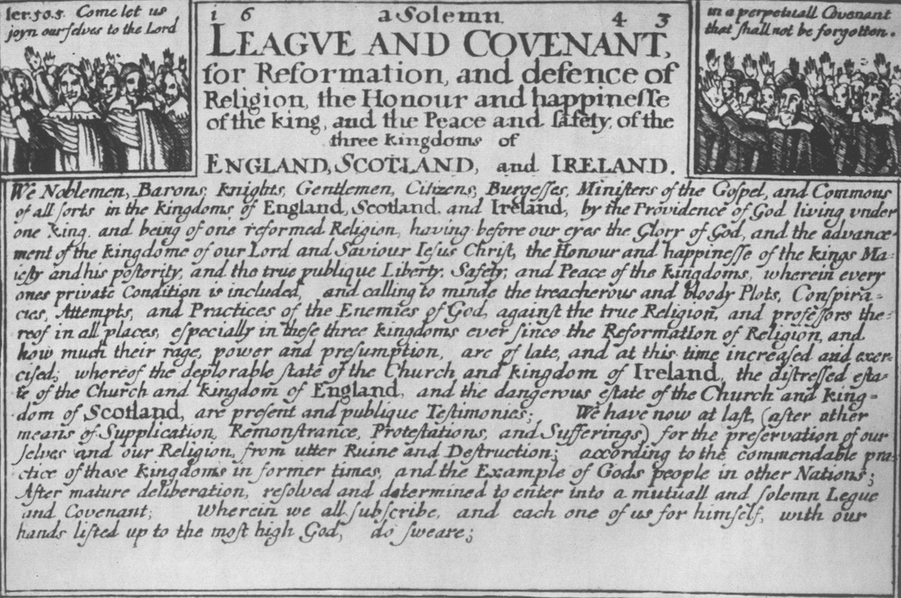 IMAGE: Opening section of the Solemn League and Covenant, 1643. https://earlofmanchesters.co.uk/the-treaty-against-a-king-the-1643-solemn-league-and-covenant/