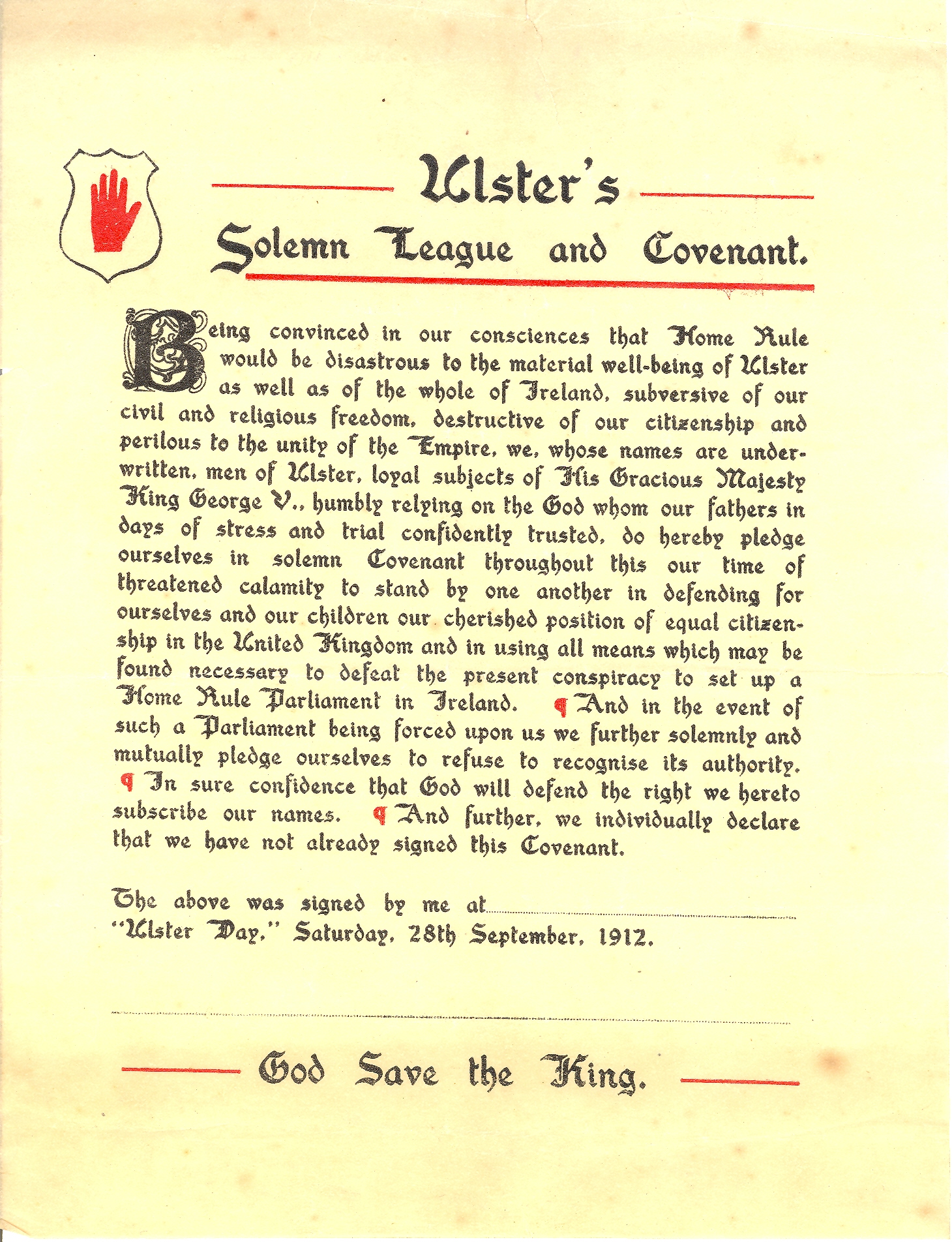 IMAGE: Unsigned copy of the Ulster Covenant Public Domain: https://commons.wikimedia.org/w/index.php?curid=7418230.