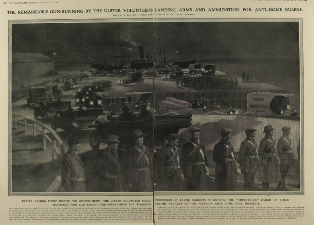 IMAGE: "The Remarkable Gun-running by the Ulster Volunteers Landing Arms and Ammunition for Anti-Home Rulers", Illustrated London News, May 2nd, 1914.