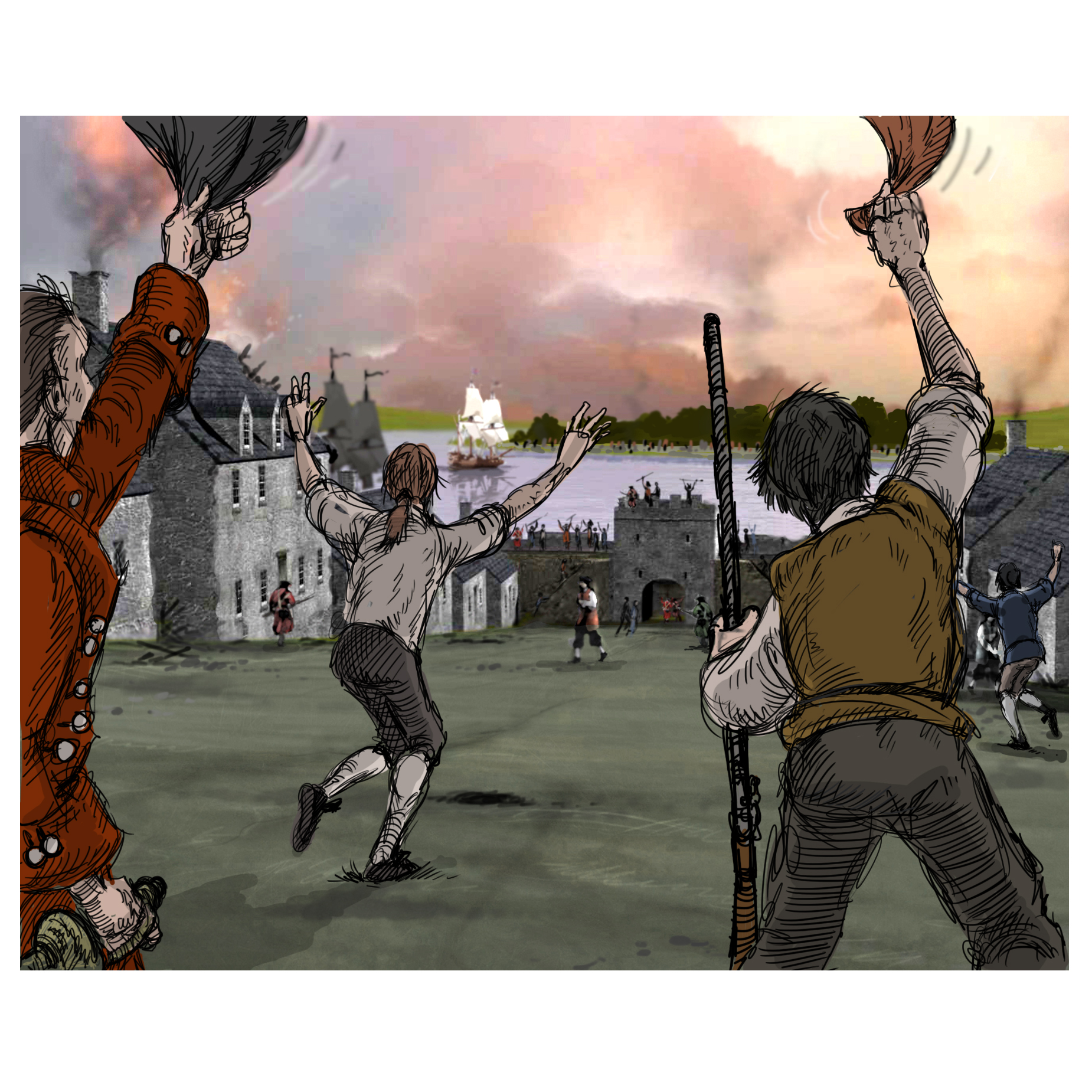 IMAGE: The Mountjoy sailing up the Foyle to relieve Londonderry, ending the Siege (July 28th, 1689).