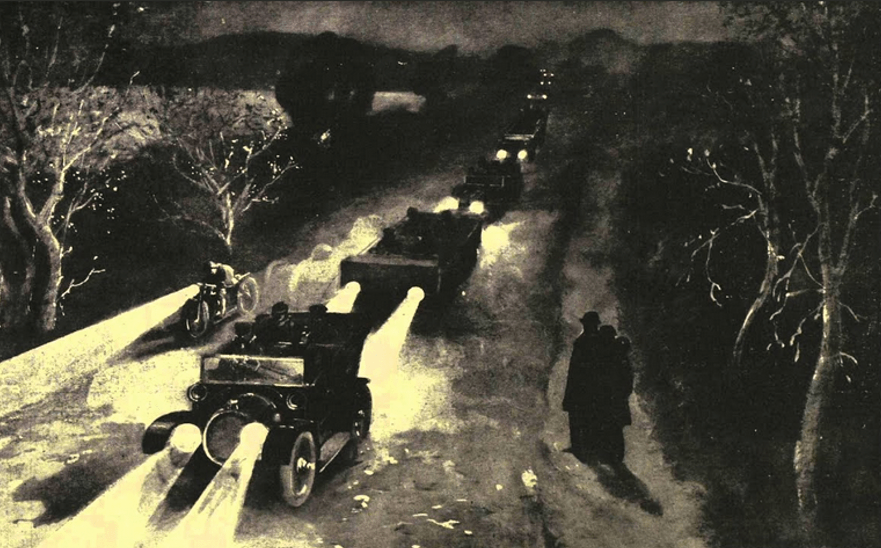 As each car received its complement, the driver accelerated his engine, let in his clutch, and slipped away in a cloud of smoke; while another moved into the vacant space and thus the work went hour after hour without pause. […]