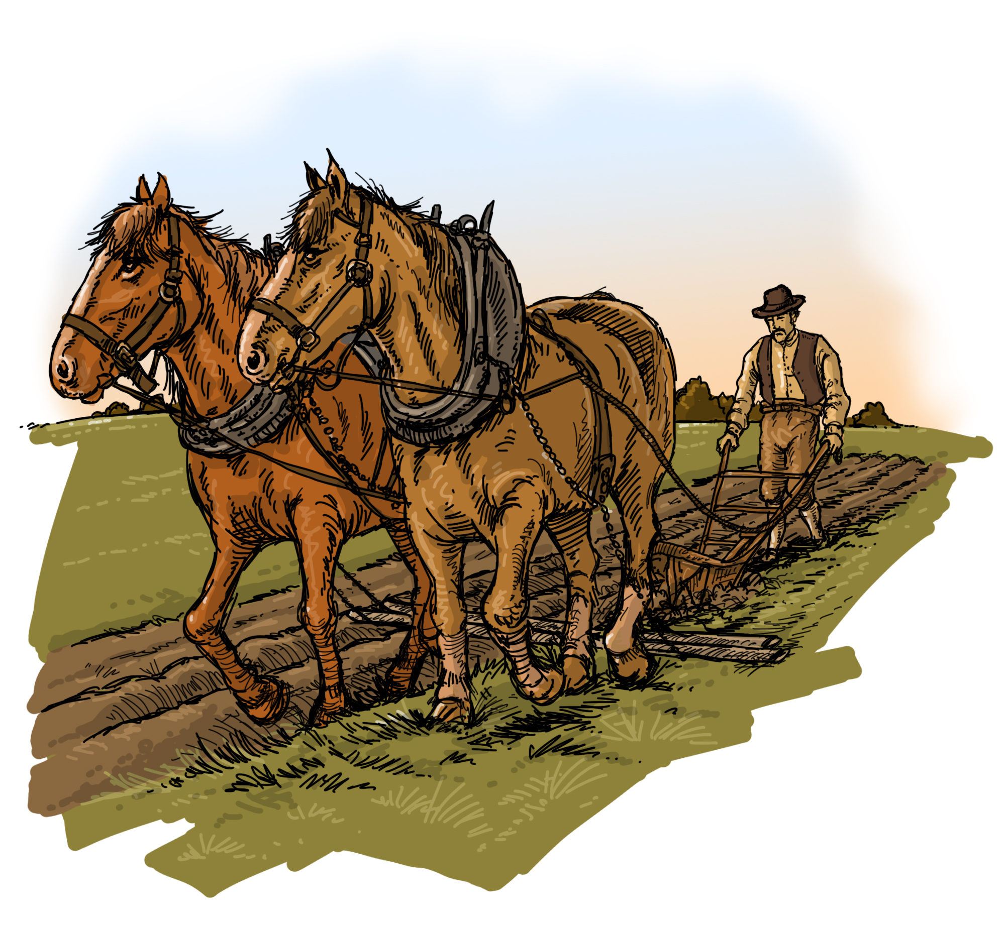 “At dawn the farmer is up and out. He ploughs, harrows, carts, spreads lime or manure, cuts hay, does everything, indeed, that his men do, and in all weathers. Inside his wife bakes griddle bread for household and servants, makes butter, helps a woman servant to milk, and prepare food for fowls and pigs. The pair eat hurried, comfortless meals of tea and bread or bacon and potatoes.” (Stevenson, pp. 186-187).