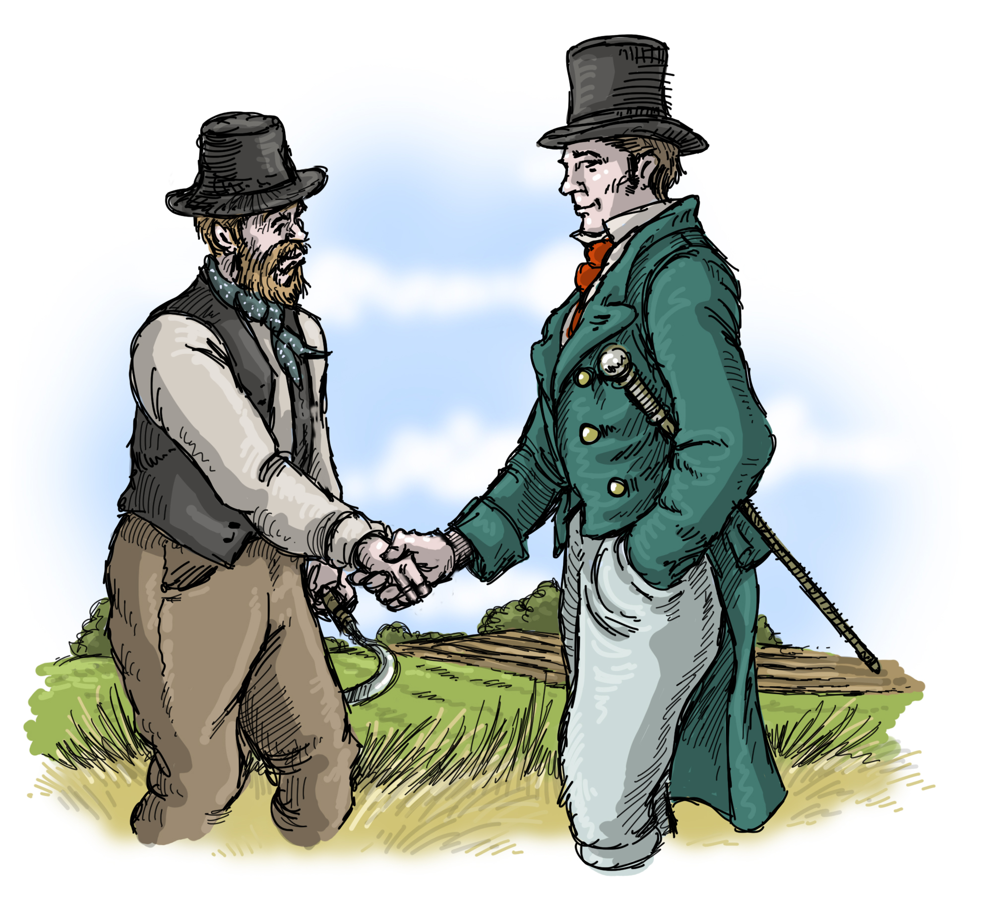 Although the demand for tenant right was largely driven by people with nationalist sympathies, it had considerable support in rural Presbyterian areas. The fact that the Ulster-Scots “squire” was so reluctant to evict tenants who were behind in their rent therefore shows a much more benevolent image of “the landlord” than what was being produced in nationalist literature of the period. Rather than confrontation, Lyttle clearly wants to project the idea that Ulster-Scots society can come to a compromise on issues such as these.